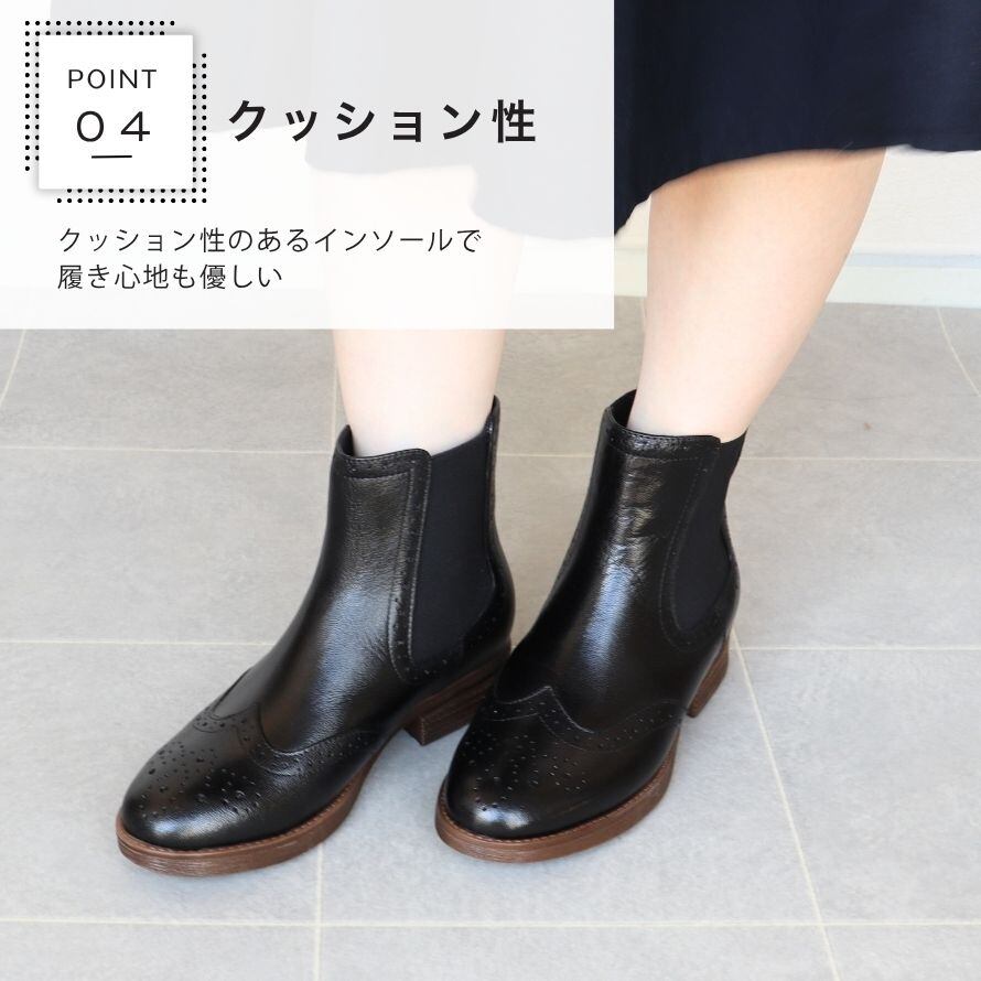 ★マラソンMAX1000円OFF! 【本革】 ウィングチップ レザー ブーツ サイドゴア レディース 幅広 ショートブーツ 歩きやすい 疲れにくい ローヒール 黒 茶 秋冬 おしゃれ きれいめ 大人 革靴 チェルシーブーツ カジュアル 防滑 シンプル ブラック 35(22.5cm)