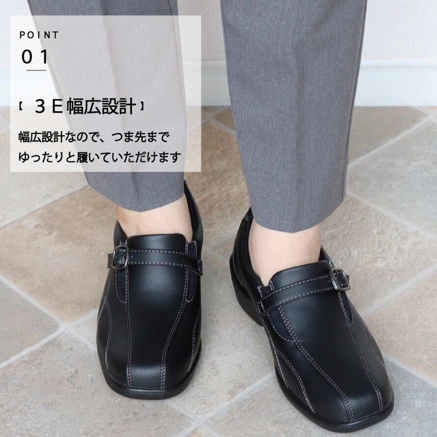 ★マラソンMAX1000円OFF! 【TOPAZ MORE】 トパーズ モア 靴 レディース シューズ コンフォート 合成皮革 3E 幅広 外反母趾 滑り止め スリッポン 軽量 歩きやすい 黒 紐 ミセス プレゼント 母の日 ブラック 21.5cm