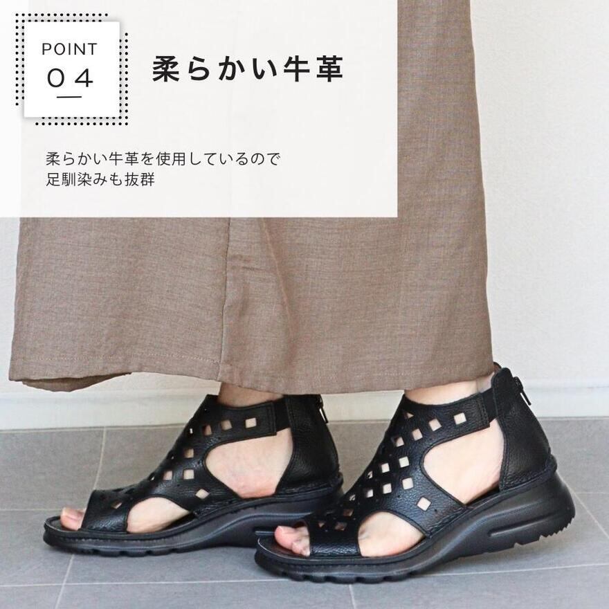 ★18日はMAX1000円OFF! 【日本製・4E】 本革 グラディエーターサンダル レディース 厚底 本革 歩きやすい オープントゥ サマーブーツ ブーツサンダル キレイめ ぺたんこ おしゃれ 軽量 甲高 幅広 外反母趾 ヒール 5cm 黒 白 asw dola 夏 カジュアル 靴 ブラック 21.5cm