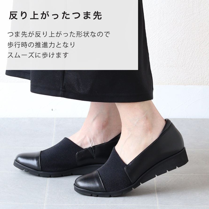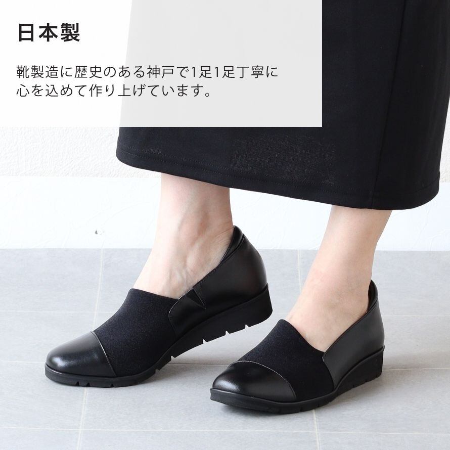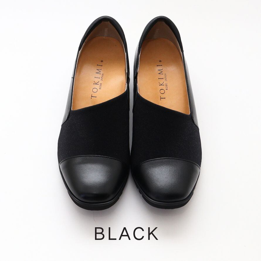 【日本製】4E 幅広 ラム革 ストレッチ パンプス 時見の靴 TOKIMI 外反母趾 フォーマル 軽量 ローヒール 3cm 歩きやすい 痛くない クッション 履きやすい カジュアル きれいめ 婦人 靴 ミセス ブラック 22.0cm